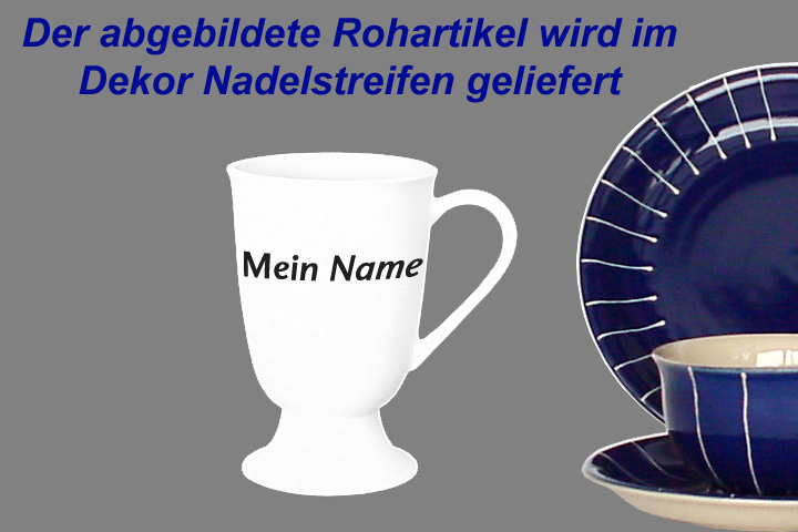 Fußtasse mit Schrift Nadelstreifen blau