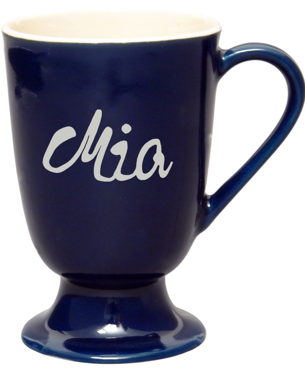 Fußtasse mit Schrift (1 Zeile) glänzend blau