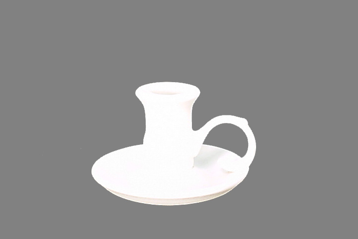 Unser nostalgischer Leuchter Nachtlicht hat eine Höhe von 6,5 cm und einen Durchmesser am Fuß ohne Henkel von 10,2 cm für eine Kerze mit 20 bis 22 cm Durchmesser.