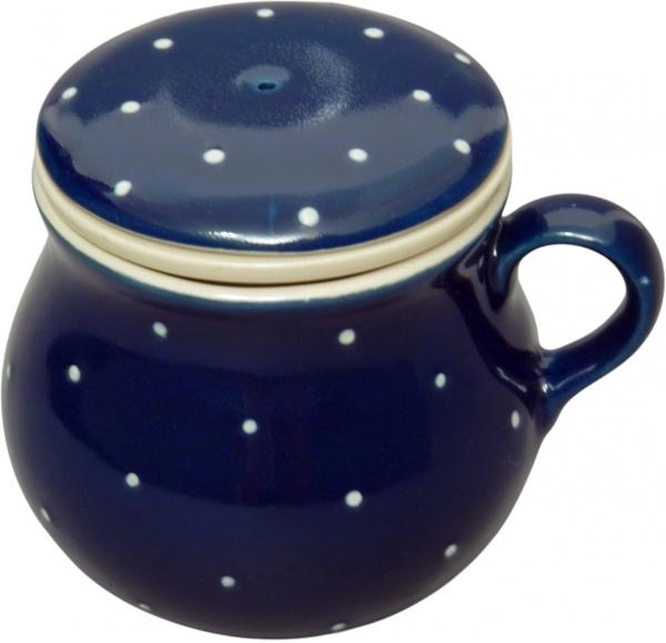 Mollytasse mit Sieb und Deckel blau 1 Punkt