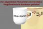 Unser Namensbecher hat einen Inhalt von 0,25 Liter, der Durchmesser am Mundrand beträgt 8,2 cm bei einer Höhe von 8,5 cm. Passend dazu empfehlen wir das kleine Tassenstövchen für immer warme Getränke und die Untertasse 15 cm für Becher.
