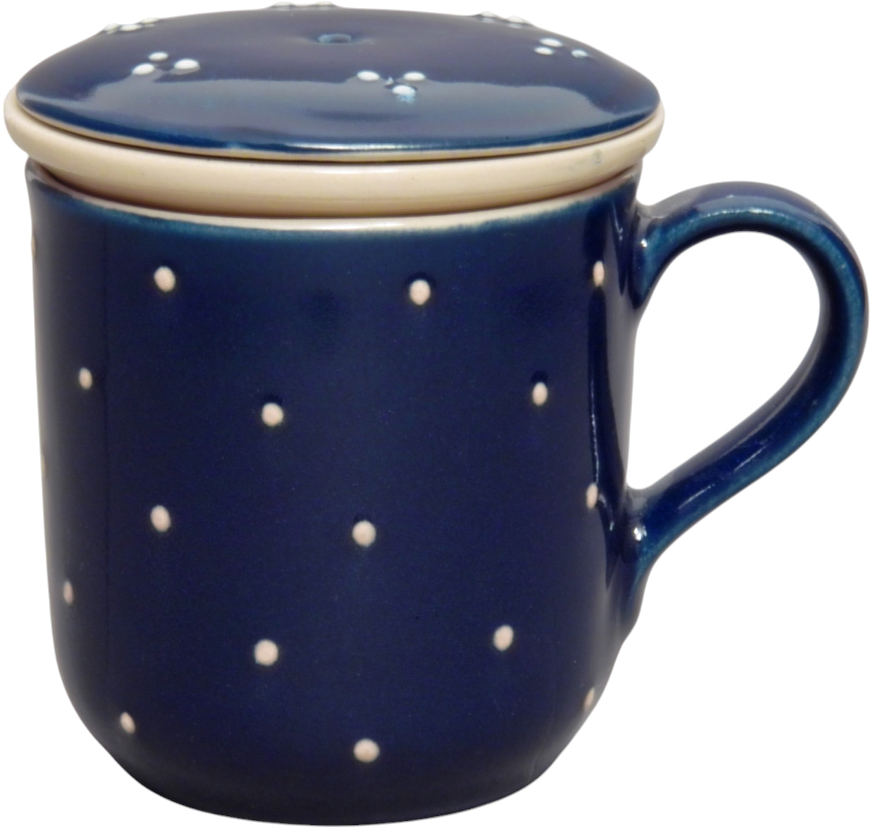 Mobile Preview: Teebecher mit Sieb und Deckel blau 3 Punkt