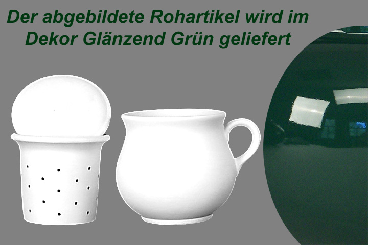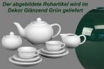 Die teilweise als Rohware abgebildeten Artikel werden natürlich in dem Dekor Glänzend grün geliefert.