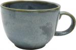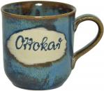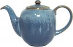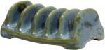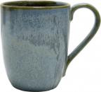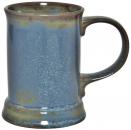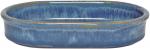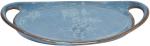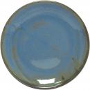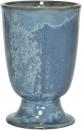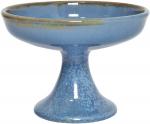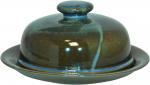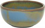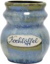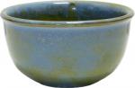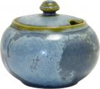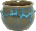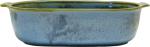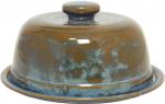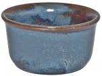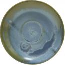 Blaue halbmatte Effektglasur, die je nach Lage von Blau über Grüntöne bis Braun chargiert. Jeder Artikel hatte andere Effekte. Davon lebt dieses Dekor.