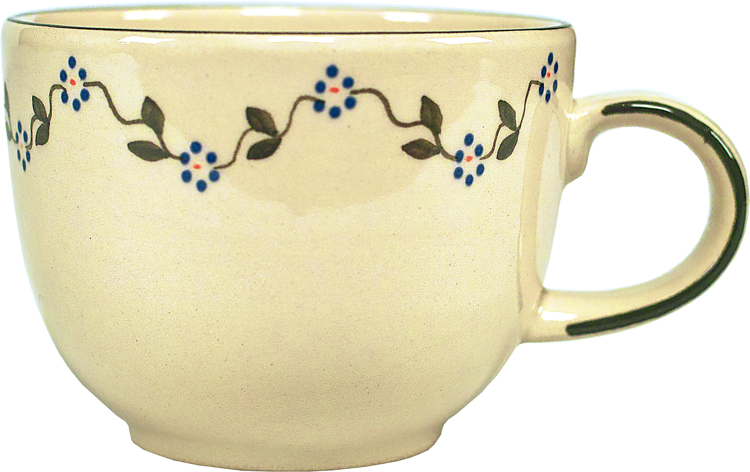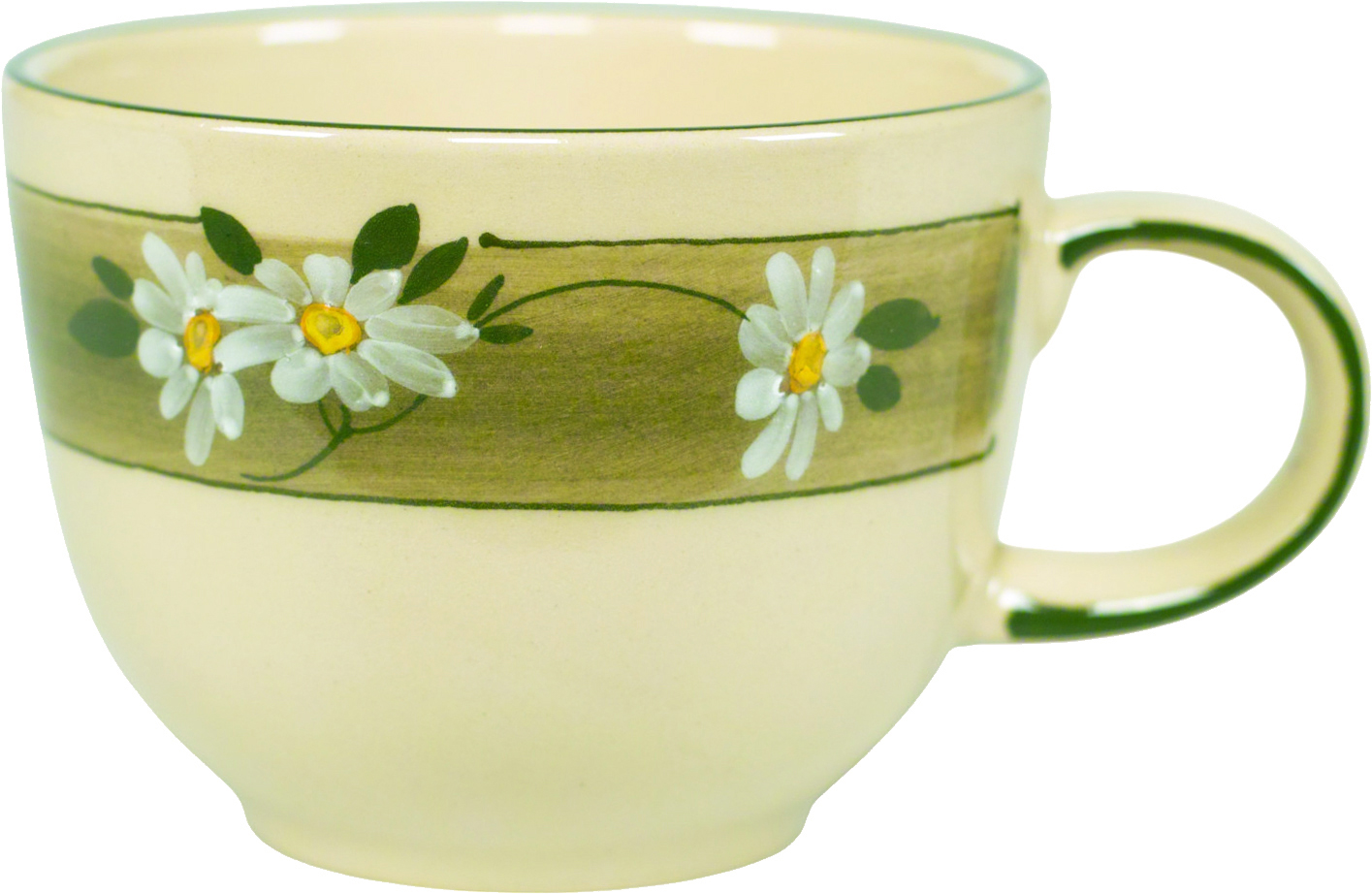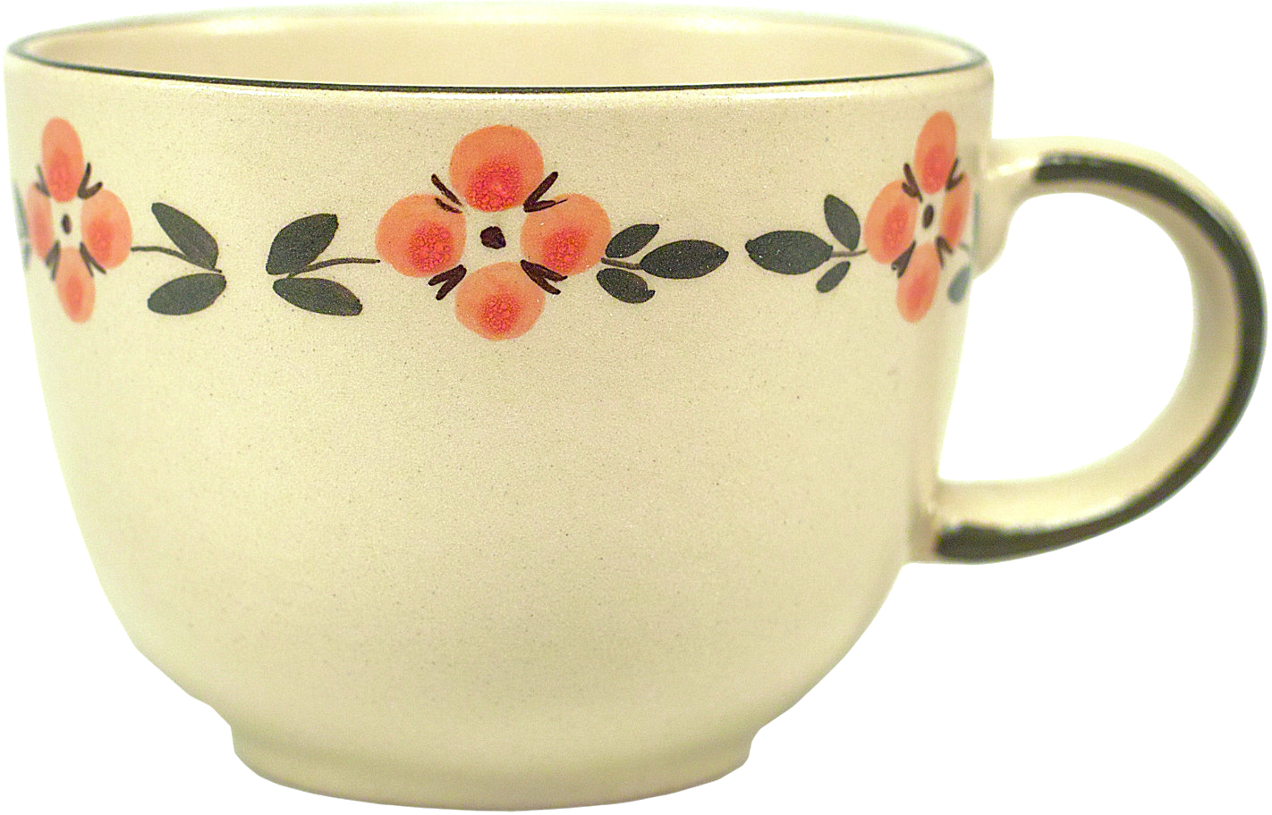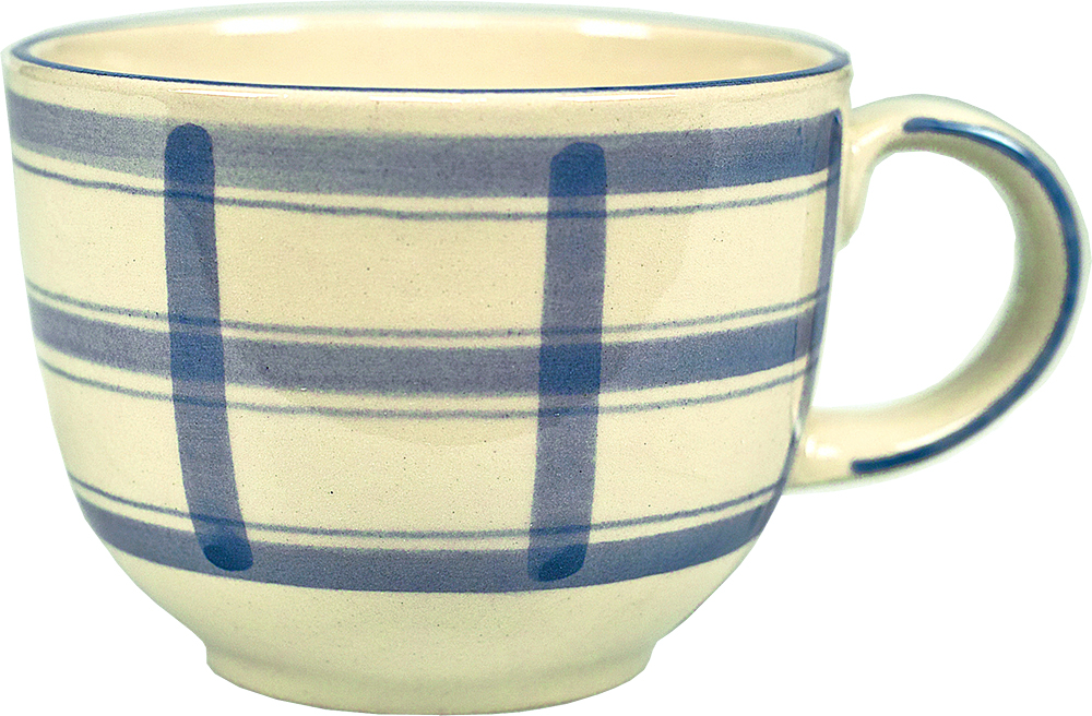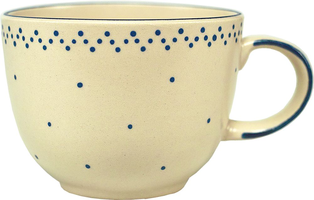 Unsere größte Tasse hat einen Jumbo-Inhalt von 0,5 Liter, der Durchmesser am Mundrand beträgt 11,4 cm bei einer Höhe von 8,5 cm. Dazu passt die Untertasse 17 cm und das kleine Stövchen (Tassenstövchen).