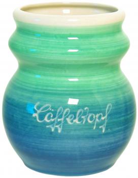 Der bauchige Löffeltopf wurde 1994 für die Form Rheinsberg entwickelt und soll Löffel, Schneebesen, Kellen usw. in der Küche aufnehmen, aber auch als Besteckbehälter für den gedeckten Tisch dienen. Sicher fallen Ihnen noch andere Aufgaben ein, den dieser Topf gern übernimmt.