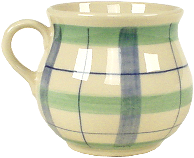 Mollytasse mit Schrift (2 Zeilen) karo grün-blau