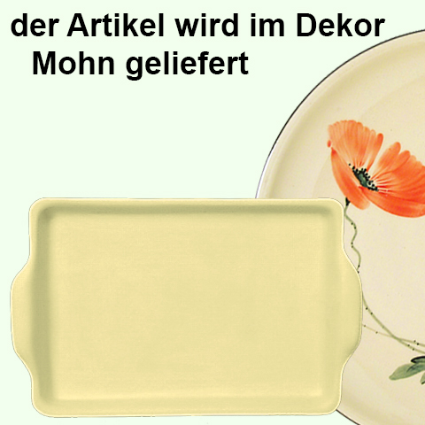 Die Platte 19 ist eckig mit Henkeln auf beiden Seiten und hat eine größte Länge von 21,5 cm, ohne Henkel 19,4 cm und eine Breite von 13,6 cm. Ideal ist sie für das Servieren von Fleisch, Wurst, Käse und natürlich Kuchen und Torten als Buffetplatte, Wurstplatte, Fleischplatte, Kuchenplatte und Käseplatte für kleine Portionen.