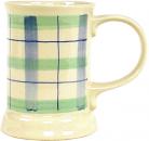 Fußtasse mit Schrift karo grün-blau